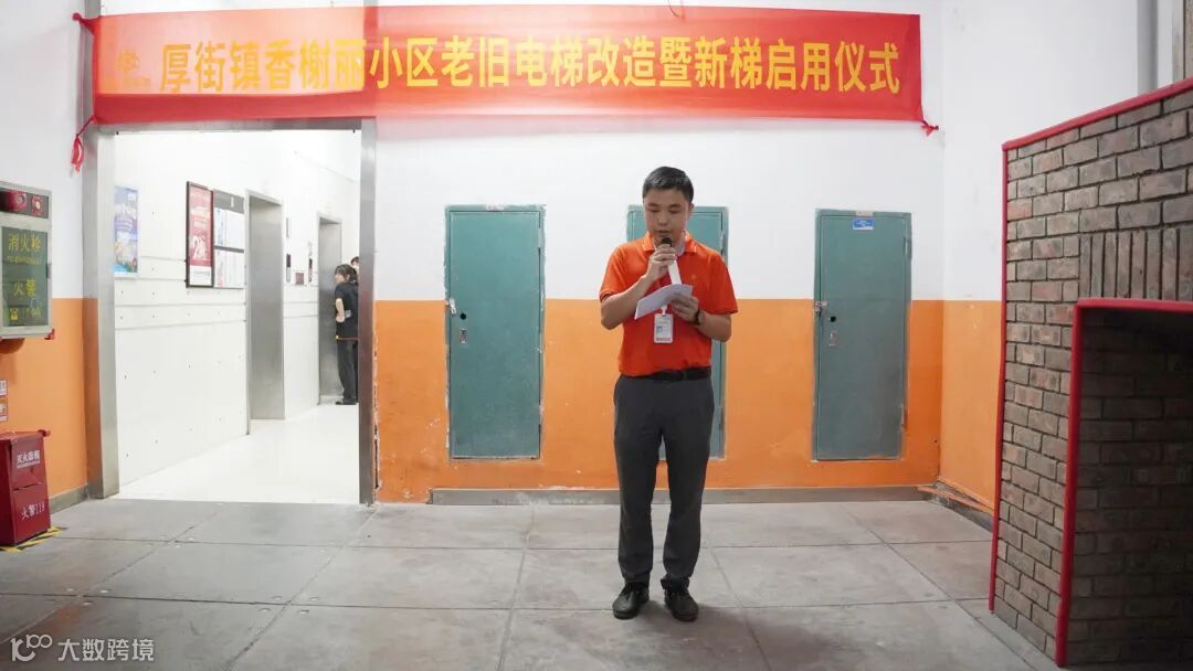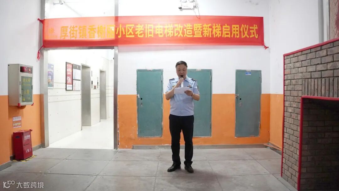 在启用仪式上,厚街市场监管分局李丹东股长表示:厚街在用电梯 9253 台,住宅小区电梯已成为日常生活中常用的一种交通运载工具,直接关系到群众出行便利和生命财产安全。感谢小区业主对政府部门的理解和支持,感谢物业管理团队的辛勤工作。同时,我呼吁大家文明乘梯,共同保护好新电梯,不乱丢垃圾、不乱涂鸦,让它始终保持整洁、安全和高效。