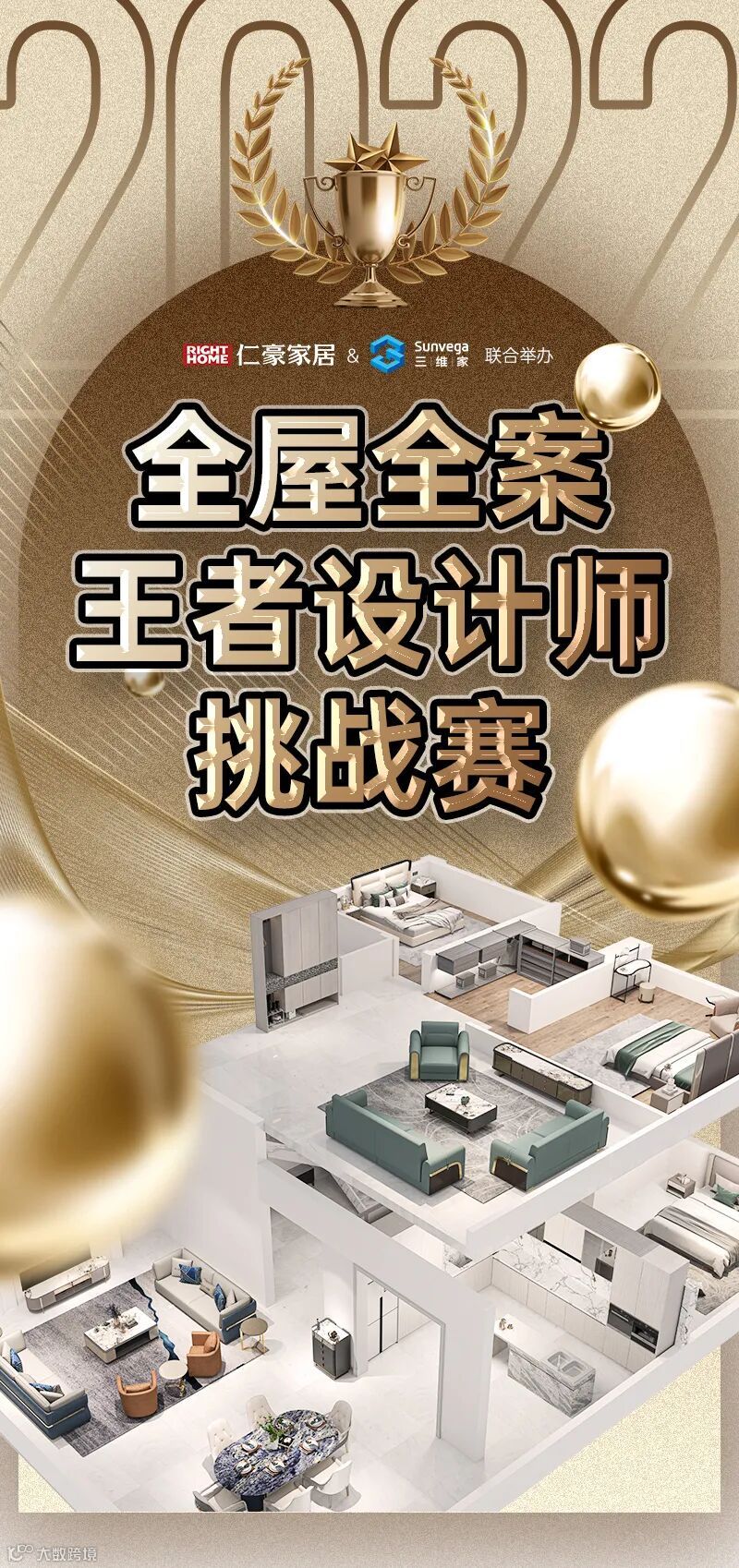 仁豪家居首届全屋全案王者设计师挑战赛,由深圳市仁豪家具发展有限公司及广东三维家信息科技有限公司联合主办。