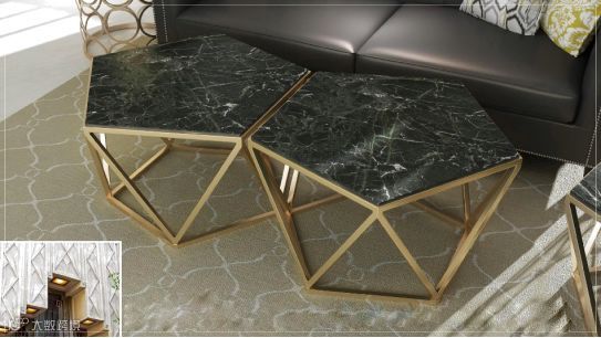 曼哈顿充满现代感的几何切割,使大理石还原最璀璨的钻石形态,采用金色的金属底架与大花绿大理石,碰撞出充满高贵时尚感的几何茶几,是现代都市时尚达人的新宠。