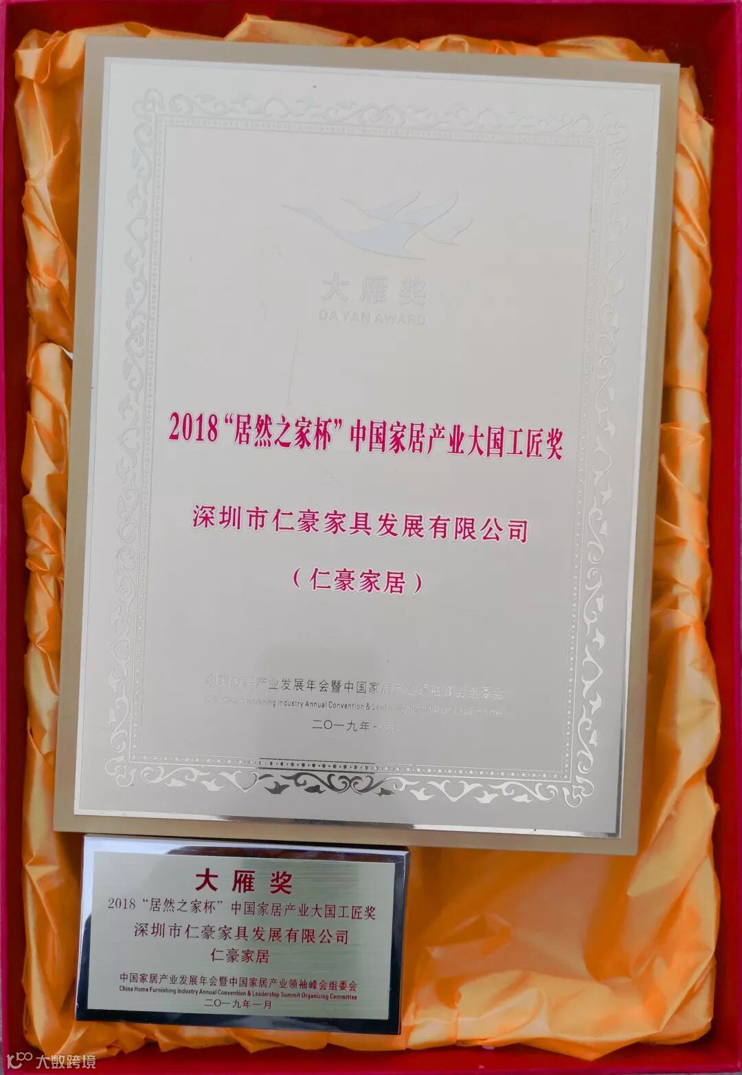 1月6日,居然之家2019新春招待会在国家会议中心成功举办。在居然之家2019年新春招待会上,凭借多年的良好合作及品牌影响力,仁豪家居再度荣获"居然之家2019年度VIP合作伙伴"、居然之家杯“大雁奖”之“大国工匠奖”一日喜获两奖,彰显品牌实力。