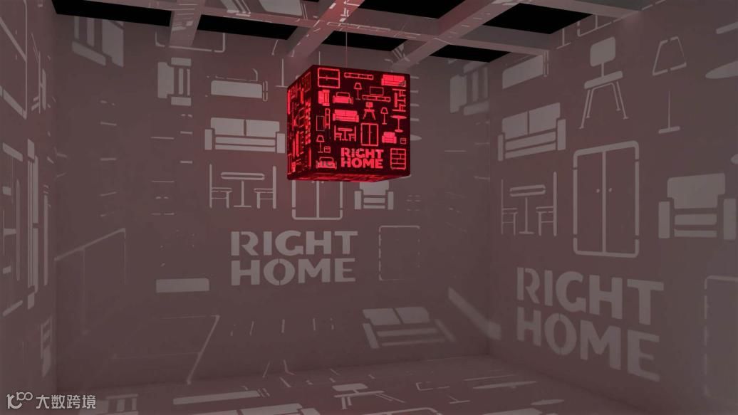 整体家居无限创意,仁豪DDS创意馆“RIGHT HOME黑盒子”创意。此创意采用镂空雕刻板构成立方体盒子,通过内部点光源的光线放射,在展示空间的五面投射出光斑图案,表达RIGHT HOME 大家居包罗万象的家居产品与解决方案,一个斑斓的家居世界。
