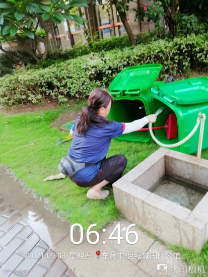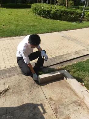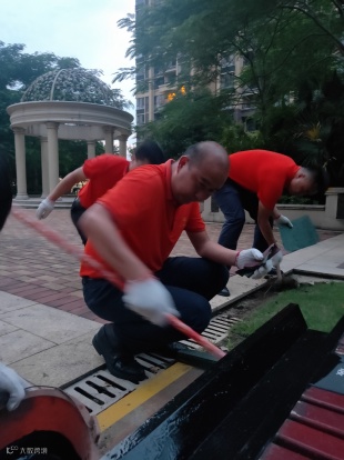 为了给小区一个整洁容貌,环境部工作人员耕耘在园区的每一个角落,宁可一人脏,换来千家洁。