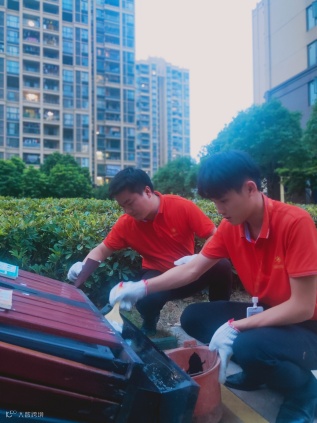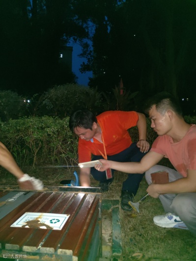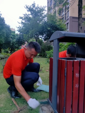 园区果皮箱刷漆焕新美化行动