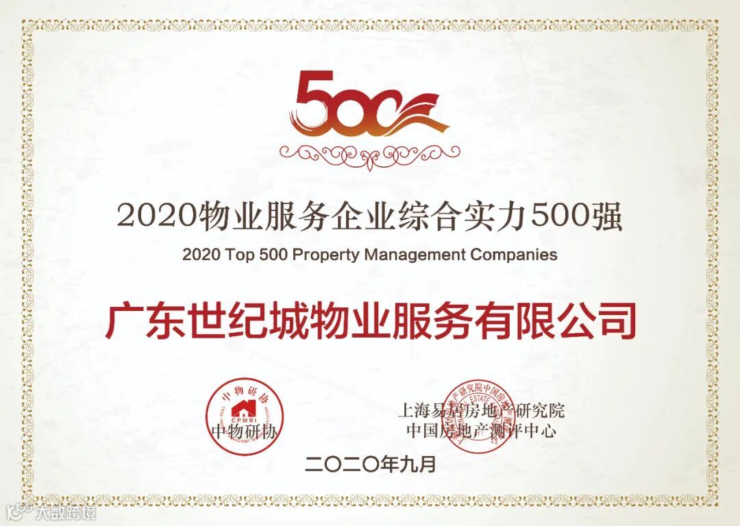 公司在2020年荣获得中国物业综合实力500强、广东省物业综合实力100强、东莞市物业综合实力20强、广东省诚信标杆企业、广东省先进企业、广东省守合同信用企业、广东省抗击疫情期间最美物业企业等诸多荣誉。2021年初获得广东省物协“优秀组织”、东莞市“友善企业”、、东莞市住建局“抗击新冠肺炎疫情先进集体”、东莞市住建局系统文明创建工作先进集体等诸多荣誉。荣誉是肯定,更是鞭策,未来的追梦之路,于我们而言更加值得乘风破浪、激情澎湃。