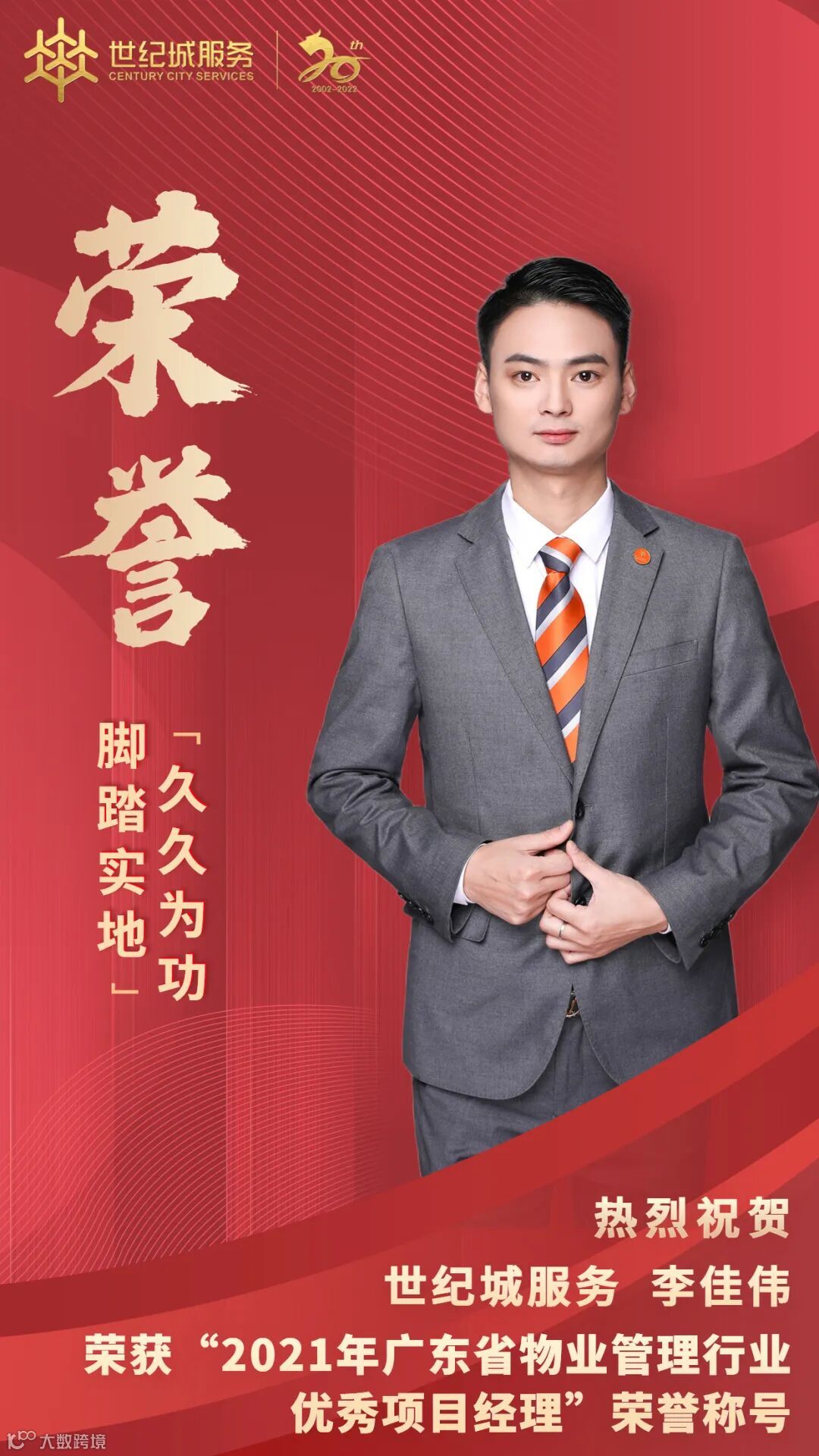 广东世纪城物业服务有限公司李佳伟工作表现突出,荣获“2021年广东省物业管理行业优秀项目经理”称号。