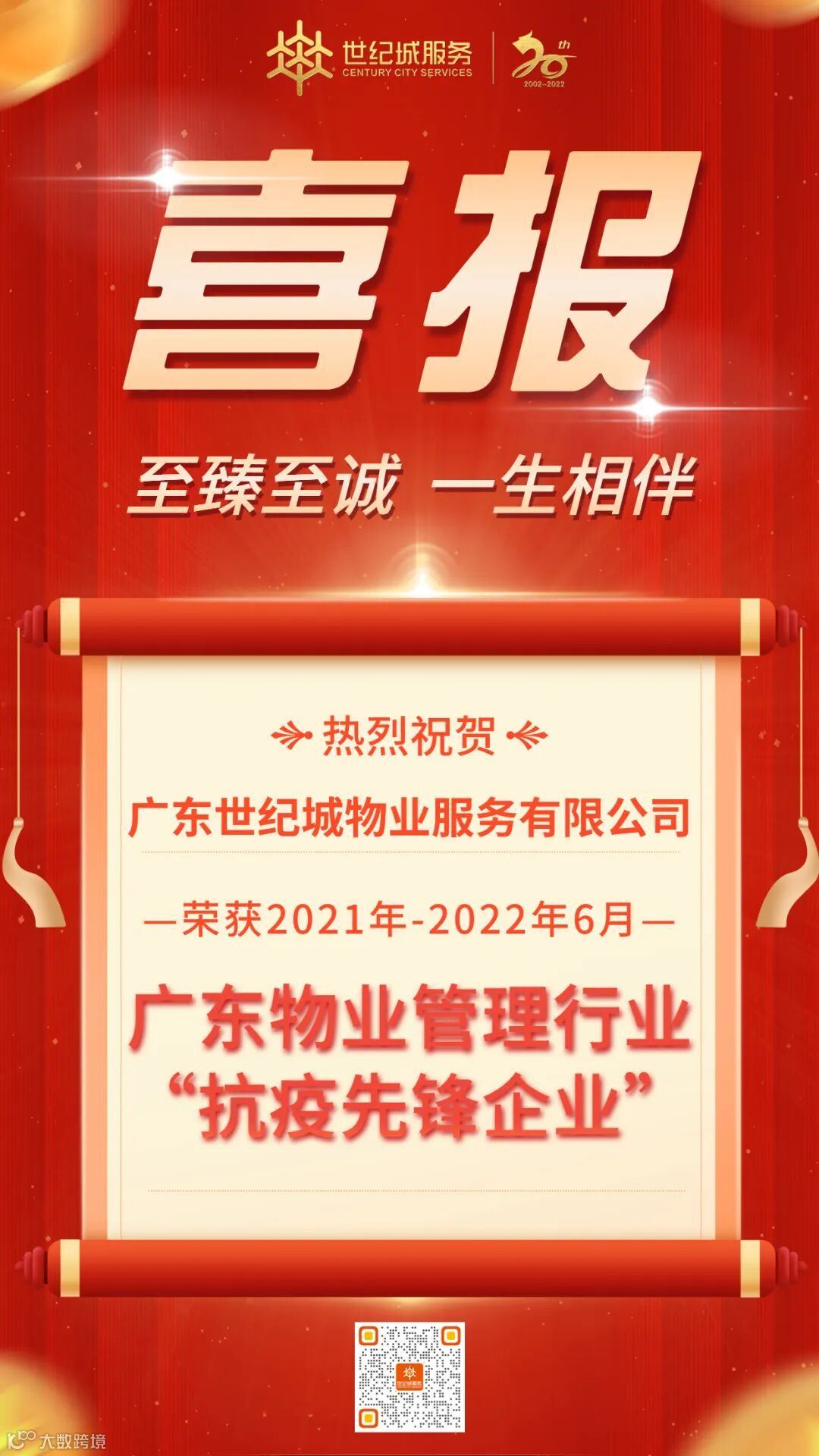 2022年7月28日,广东省物业管理行业协会第六届第一次会员(代表)大会暨理事(监事)会换届会议于广州顺利召开。在此次会议上,广东世纪城物业服务有限公司以近年来在抗疫行动中的优异表现和突出贡献,获得了省行业协会的肯定与表彰,荣获“2021年-2022年6月广东省物业管理行业抗疫先锋企业”荣誉称号。
