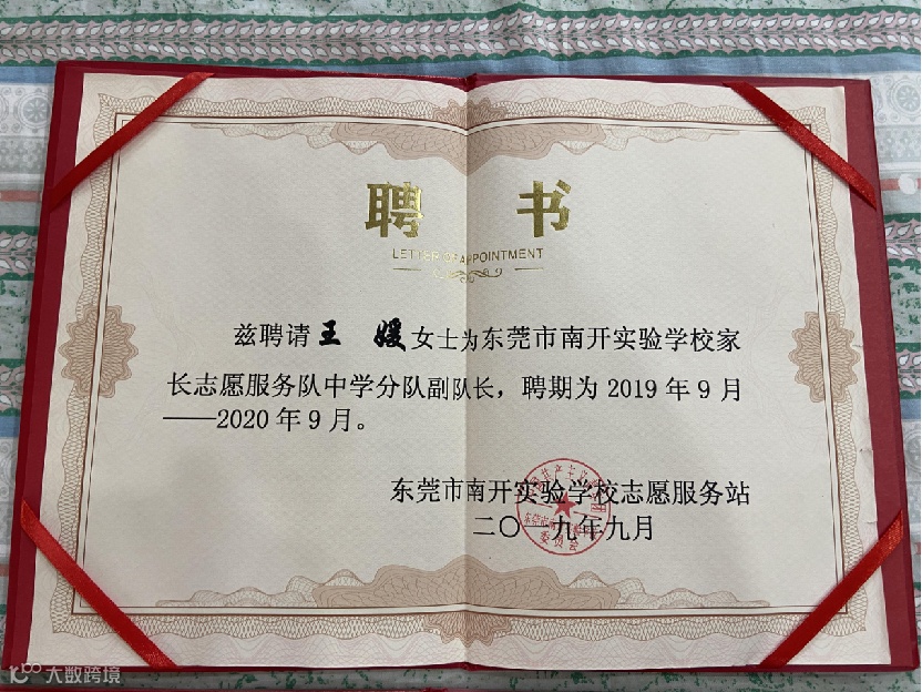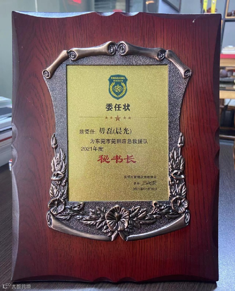 此外,毋磊与妻子王媛更是一对“向上向善”的夫妻,两人在自己的事业之外,还主动承担其他“职业”。毋磊在东莞市莞狮应急救援队担任秘书长,每个月跟随组织前往各个小区、学校等进行公益应急救援培训,在组织里荣获多种奖项。其更是广东i志愿协会2星志愿者,累计服务时长长达515小时,同时也是幸福公馆小区的志愿者,在疫情期间多次参加核酸检测志愿者工作。