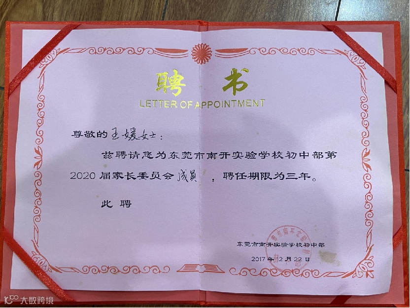 妻子王媛则是南城开心实验学校“家委会”常委,其担任学校家委6年,日常帮助孩子购书、资料等,公益花费自己的时间协助老师处理班级事项。妻子王媛表示:六年下来真正成长最大、收获最大的是自己,虽然在这个过程中可能很多时候是在做一些吃力不讨好的事情,但在这个过程中坚信只要坚持做正确的事情,问心无愧就好。