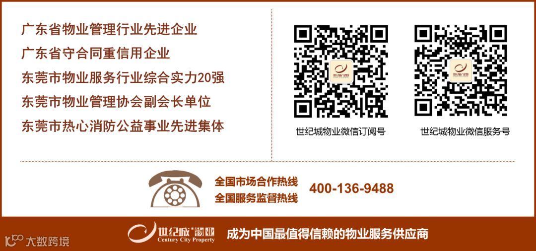 广东世纪城物业服务有限公司成立于2002年,是专业从事物业管理和顾问、资产管理、家庭服务等各类专业定制化服务的企业,拥有国家物业管理一级资质,公司荣膺东莞市物业服务行业综合实力20强称号。现为东莞市物业管理协会副会长单位、广东省物业管理协会常务理事单位、中国物业管理协会会员单位。公司荣获“广东省守合同重信用企业”称号,“广东省物业管理行业先进企业”。公司于2013年获得国际ISO9001/14001质量/环境及国家HOSAS18001职业健康安全管理体系认证,制度健全,管理规范。