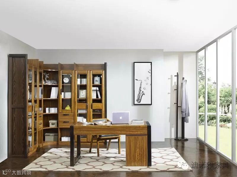 宽敞明亮的书房,乌金木的色泽给人一种特别的视觉体验,该款书柜外观明朗而圆润,厚重大方且秀丽时尚;分层的合理设计与开放式设计与书的高度做了适当的调整,也突显整个书柜的储存功能。