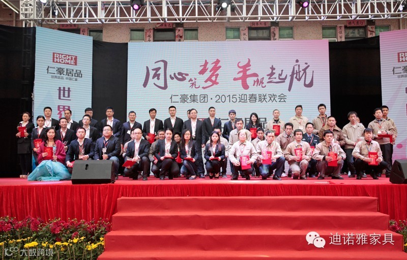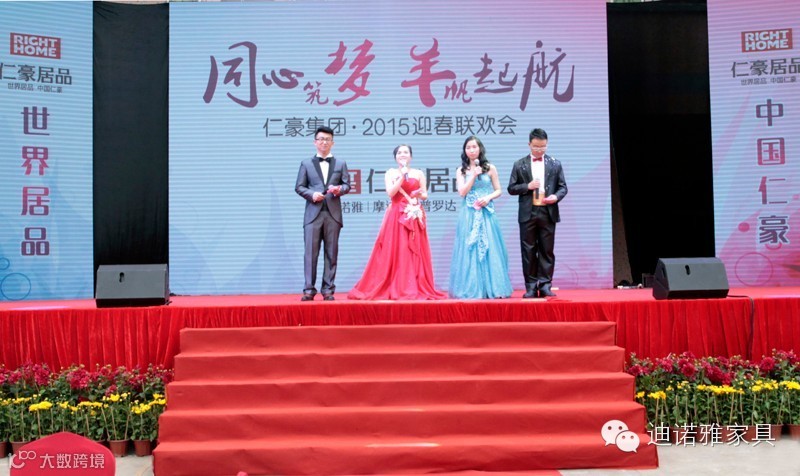 联欢会在一派喜庆、祥和的开门红舞蹈中拉开帷幕,仁豪集团董事长尤国忠发表了激情洋溢的新年贺辞,回顾了2014年仁豪集团取得的辉煌成绩,在全体员工努力和广大合作伙伴的支持下,各项工作有顺开展,各条战线成绩斐然,公司综合实力持续增长,品牌影响日益扩大,行业地位日益提升,赢得了消费者和市场的充分肯定和广泛赞誉,向辛勤工作的广大员工和关心支持仁豪发展的各位嘉宾表达诚挚的谢意并致以新春的祝福。他强调2015年是公司发展中至为重要的一年,这一年继续加大产品研究推广力度,围绕“仁豪居品”大力做好品牌战略提升工作,在终端和渠道传播方面寻求突破,提高品牌知名度、美誉度,从容应对风云变幻的市场环境和各种挑战,为实现企业再次腾飞迈好坚实的一步。