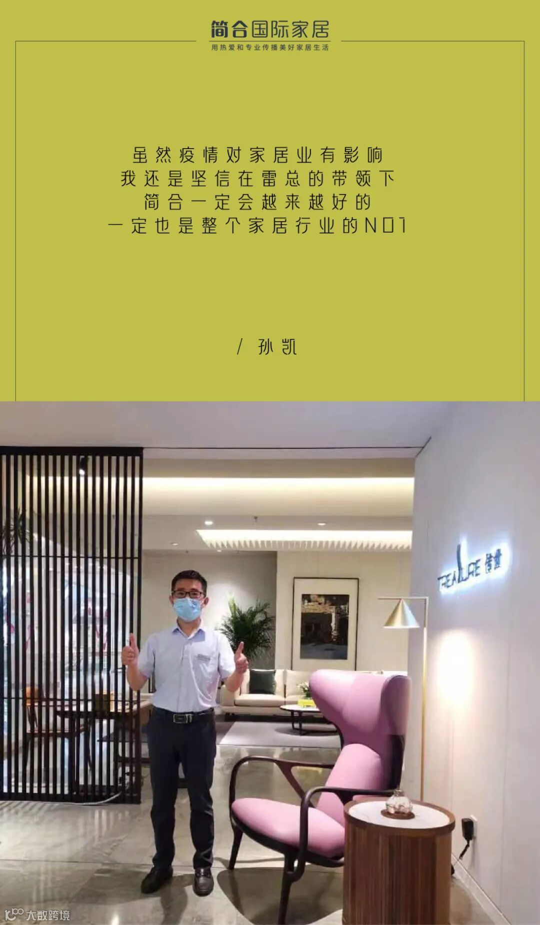 在简合认识了我的老婆,也就是运作部的花姐,后面有了2个可爱的孩子,也可以说我在简合属于爱情事业双丰收型,这个14年,我成就了毕业时的理想,在上海成家立业买了房子,简合这个大家庭赋予我人生无比重要的意义,也特别感谢雷总的信任与支持。我坚信在雷总的带领下,简合一定会越来越好的,一定也是整个家居行业的NO1.。