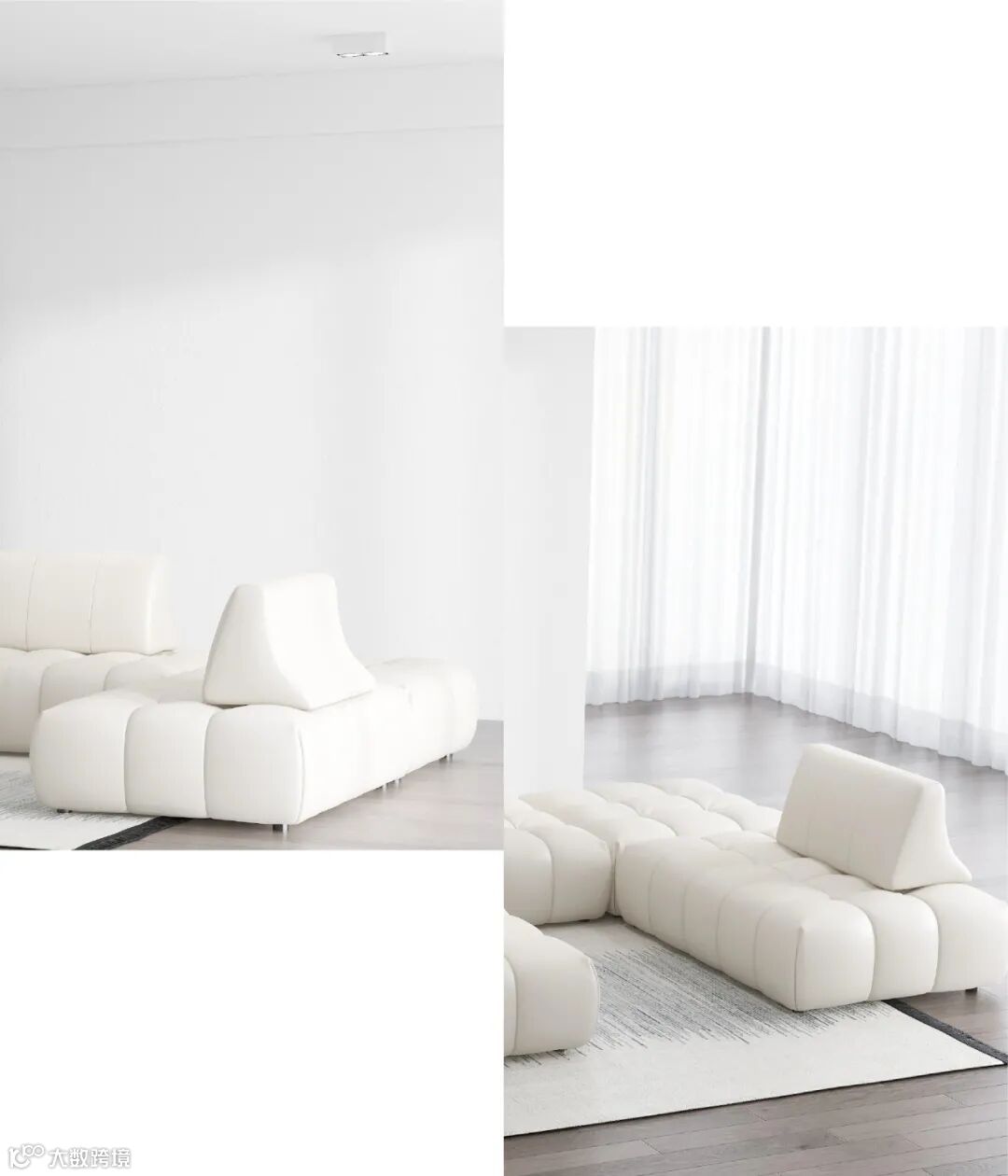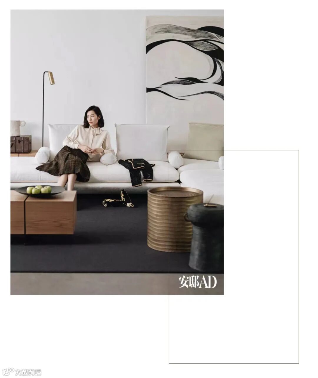 在这个工作室里,刘雯对于沙发的选择也彰显了自己绝佳的品位,简单的色彩、利落的线条、柔软的质感、模糊的边界,看似随意,却有让人自在随性;几何轮廓与黑白对比,在自然的光线中营造出温柔灵动的氛围;内外之间,独具个性,彰显极简主义之美的灵魂所在。