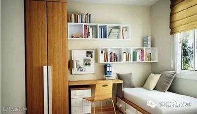 由于空间较小,不能摆设太多,所以说要选择简单的家具,同时,要在有限空间内放比较简单低矮的、可以折叠的家具。床可以选择较高的,床下的空间可设计为矮柜,抽屉。尽量选择多功能的家具,如折叠床、桌椅等。在浴室内摆放收纳型家具,让毛巾及家里的瓶瓶罐罐有更好的安放之处。还可以利用百叶帘,竹帘来做软隔断,使空间实现多功能区的划分,这样既可以保证私密性,又能很好的区分物品和装饰物。