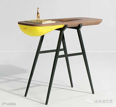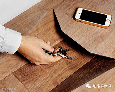 这款和我们一般见到的桌子造型有很大的区别,挺有趣的。最需要点赞的是桌面部分有一个开口和滑槽,小物件可以直接丢进去然后滑落到桌子底部颜色鲜艳的塑料抽屉里面。虽然大大的开口不适合办公或者绘图之类的,但是用于日常的阅读或者伏案还是相当不错和有创意的。