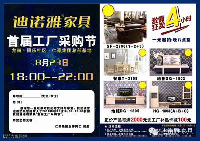 第四重惊喜:一元起拍——新家具,来就送。8月23日晚八点整我们还设有“一元家具拍卖活动”,多款超值产品等您一元起拍。
