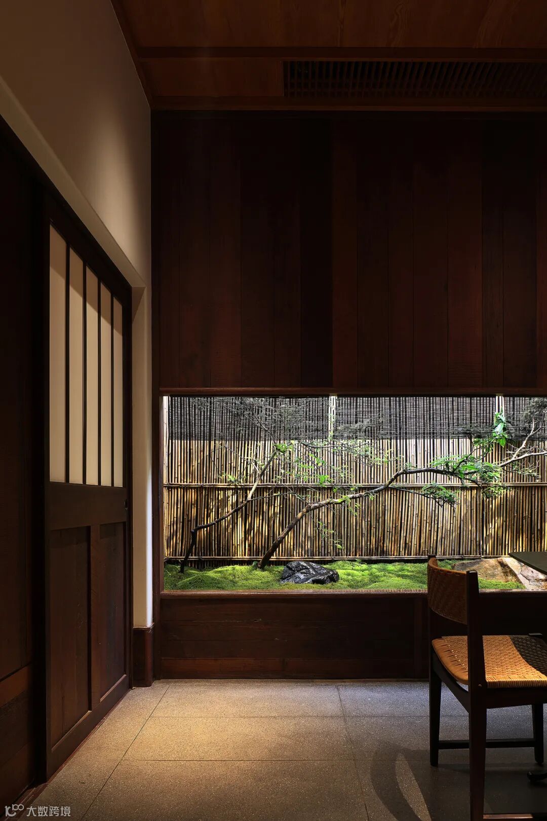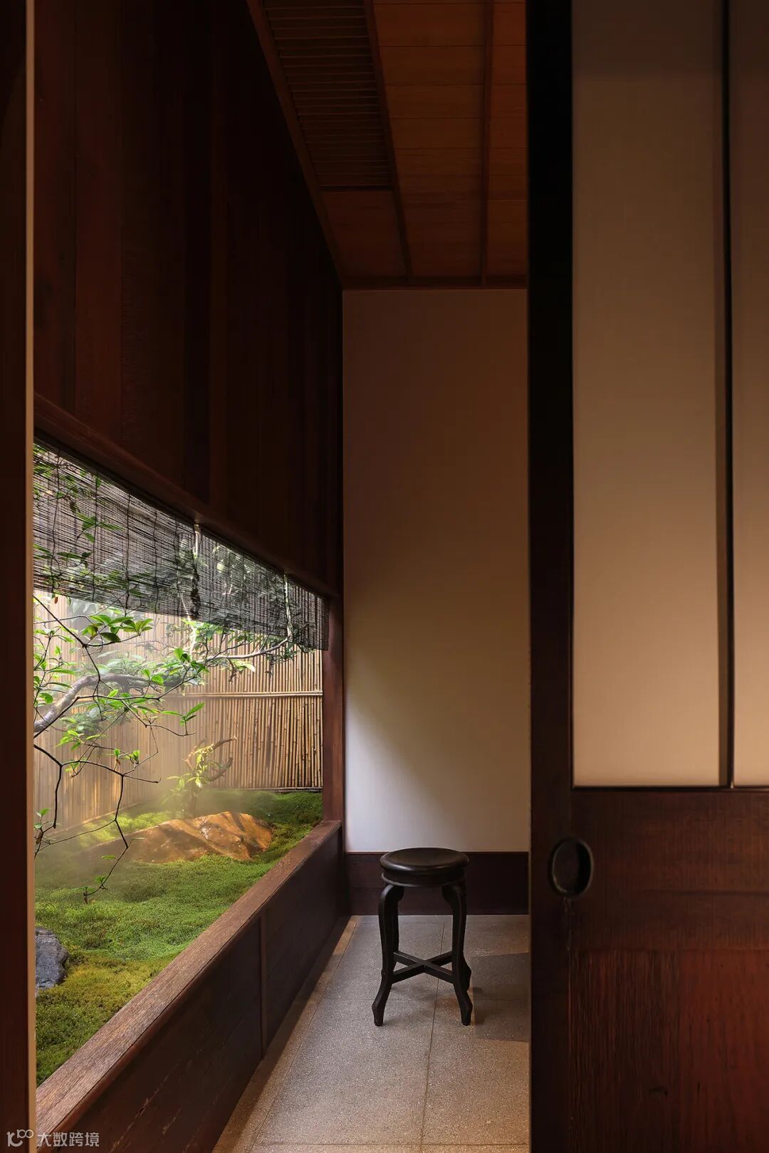 谷崎润一郎在阴翳礼赞中说到阴翳之美表现为对直接光照的排斥,而追求微弱光线营造的幽暗之美。阴影有机会游离于茶室之中,天然材料的特质可以直抵触觉。