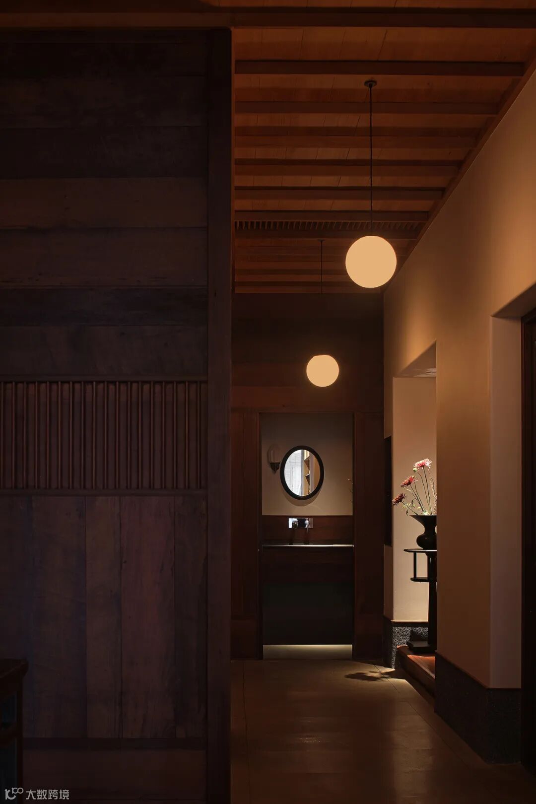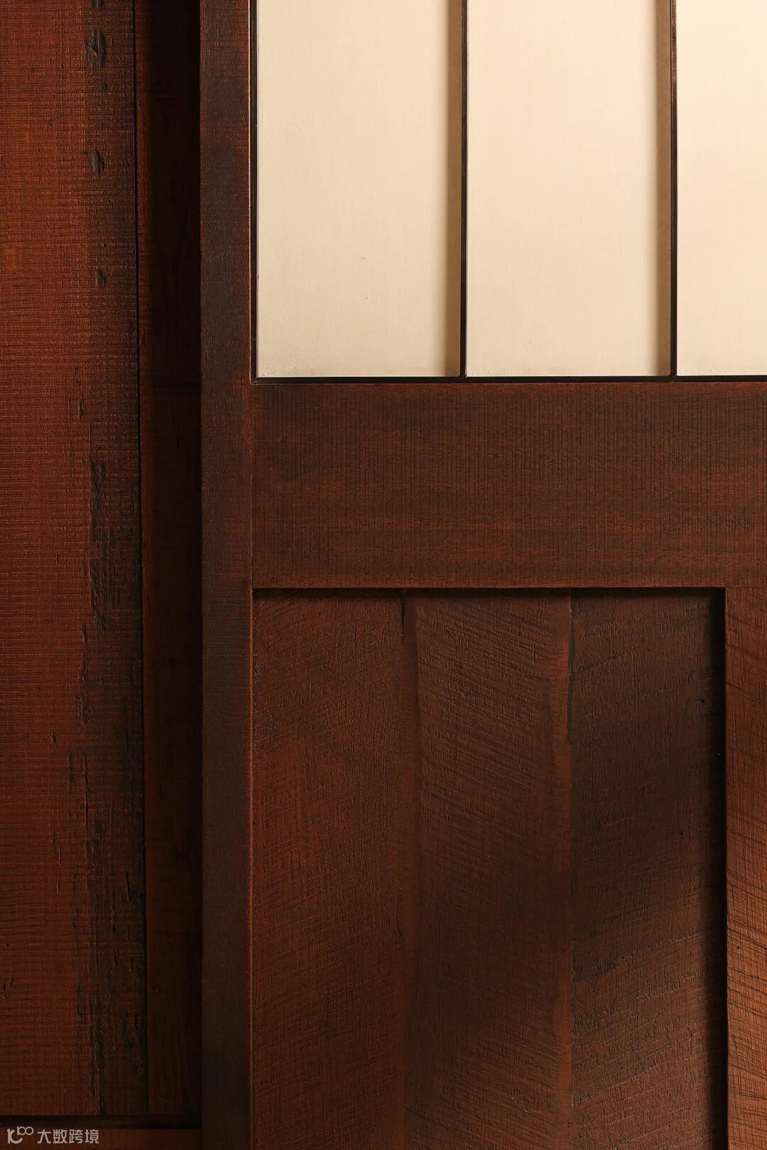 老木头拼铺在茶区的,这些旧材为现代空间语境铺垫人文肌理,平和适度,在克制内敛中感悟物质赋予空间的时间感。