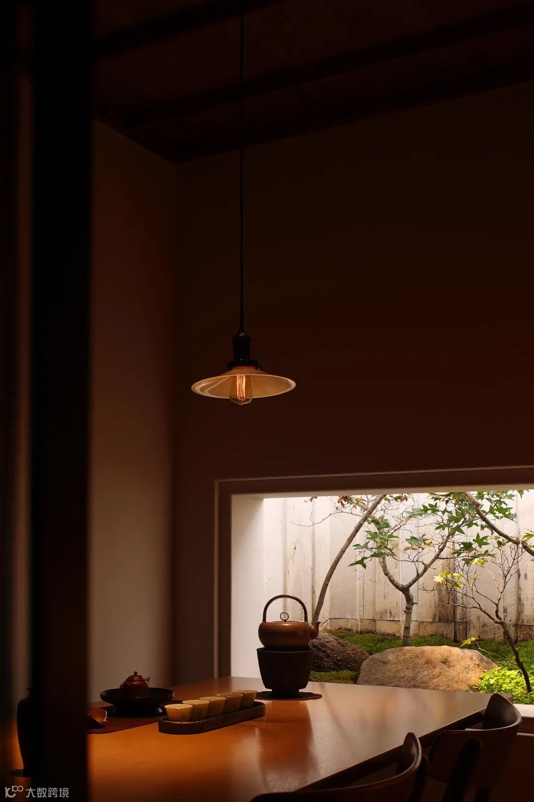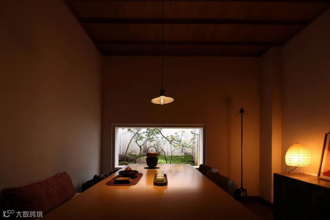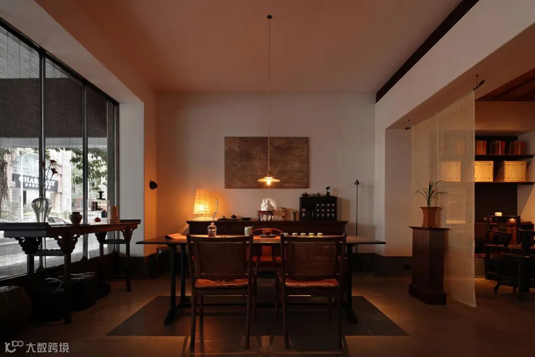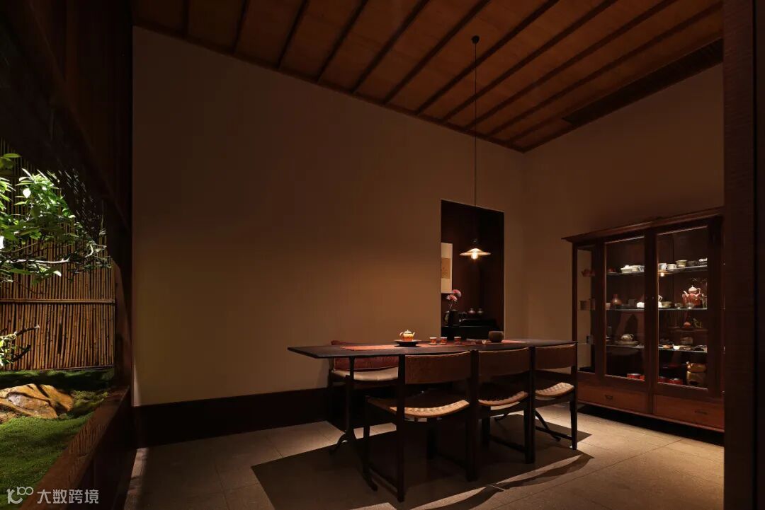 为茶室更添一份淡泊宁静之意。静坐于此却能超越空间,与亲人好友一起,与自然与共,享受渐缓流逝的时光。