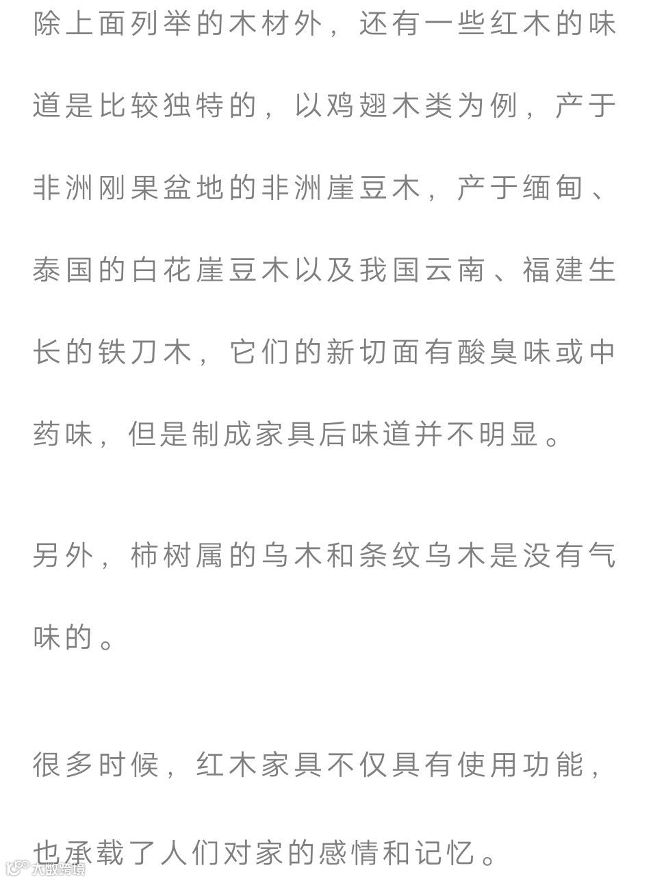 在红木家具行业也流行一句这样的话,“未见其木,先闻其味”,对于红木行家来说,一些珍贵的红木木材,有时候凭其味道就可以大致判断出这是何种木材了。