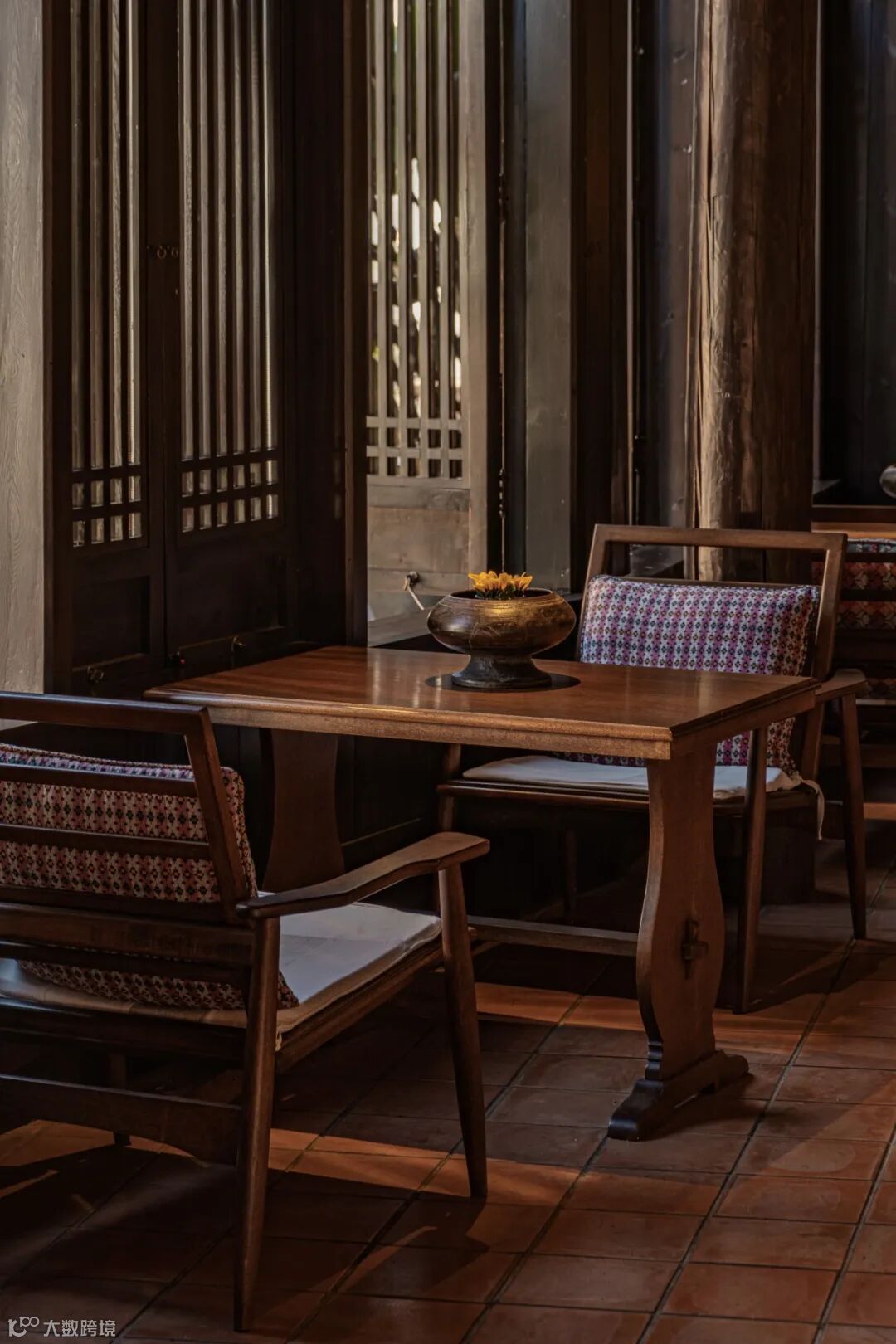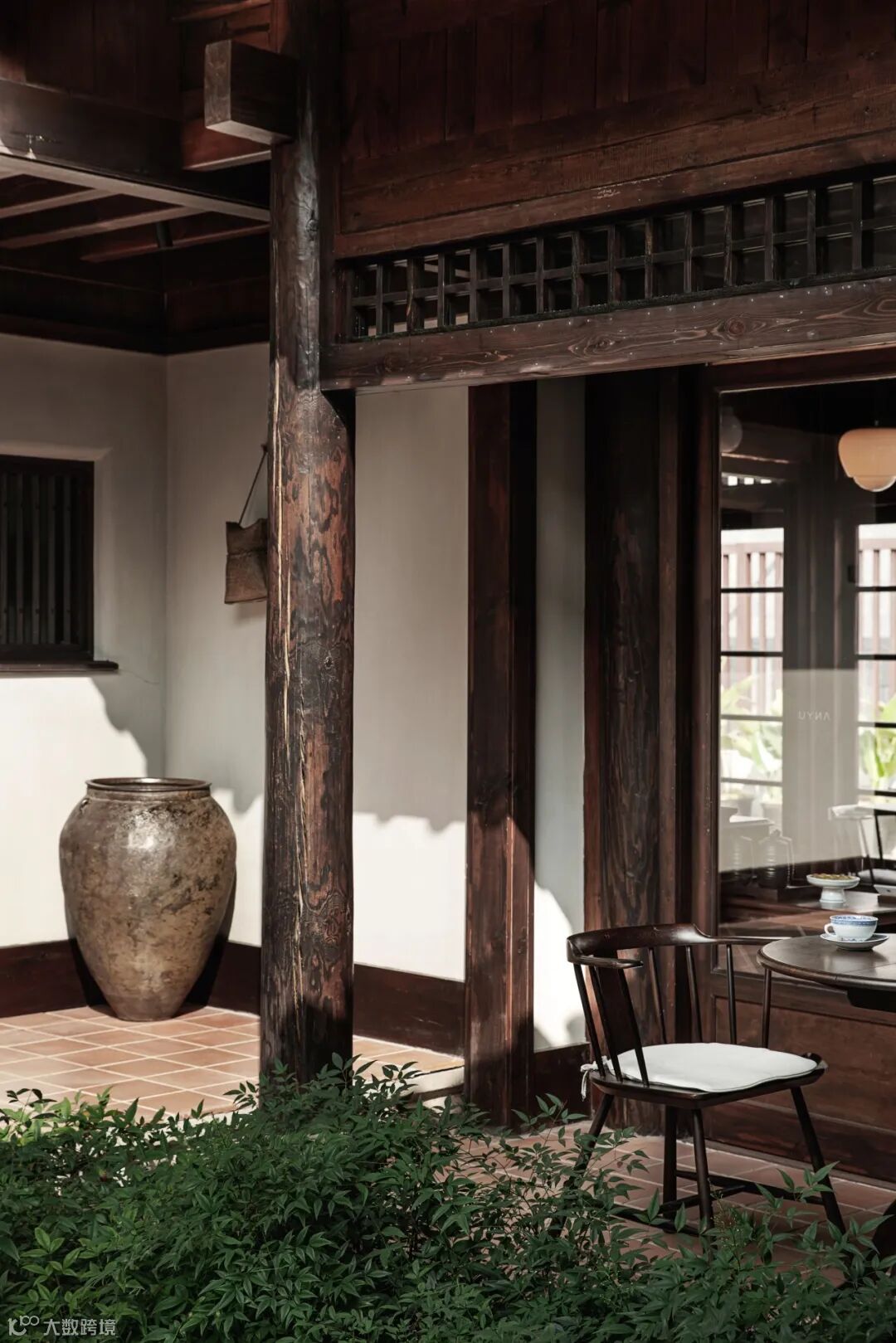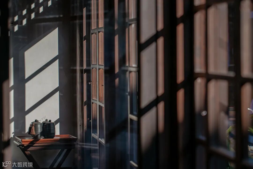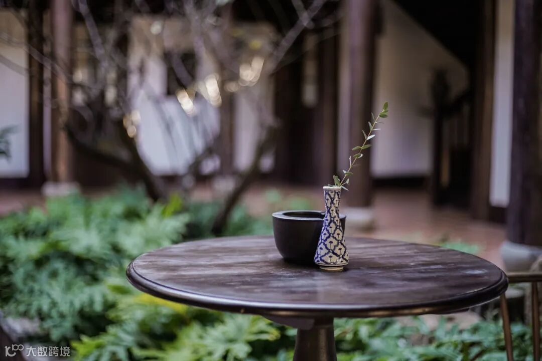 小小天井里的绿植苗木在阳光底下影影绰绰,回廊下的兰花尽显淡然清雅,一个个简而不繁的摆件恰到好处地点缀在角角落落里,实木的原味似乎淡淡弥散在空气里……