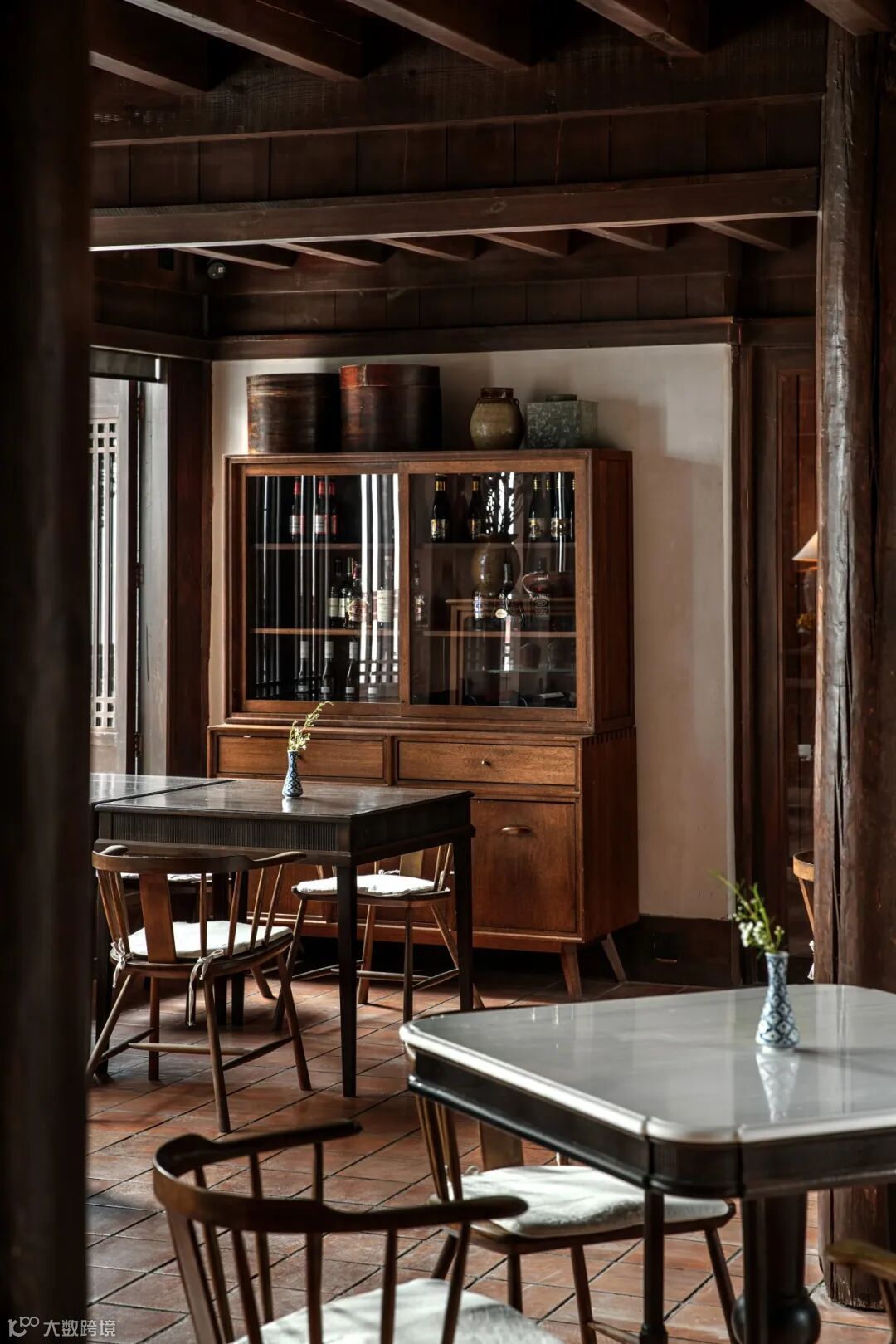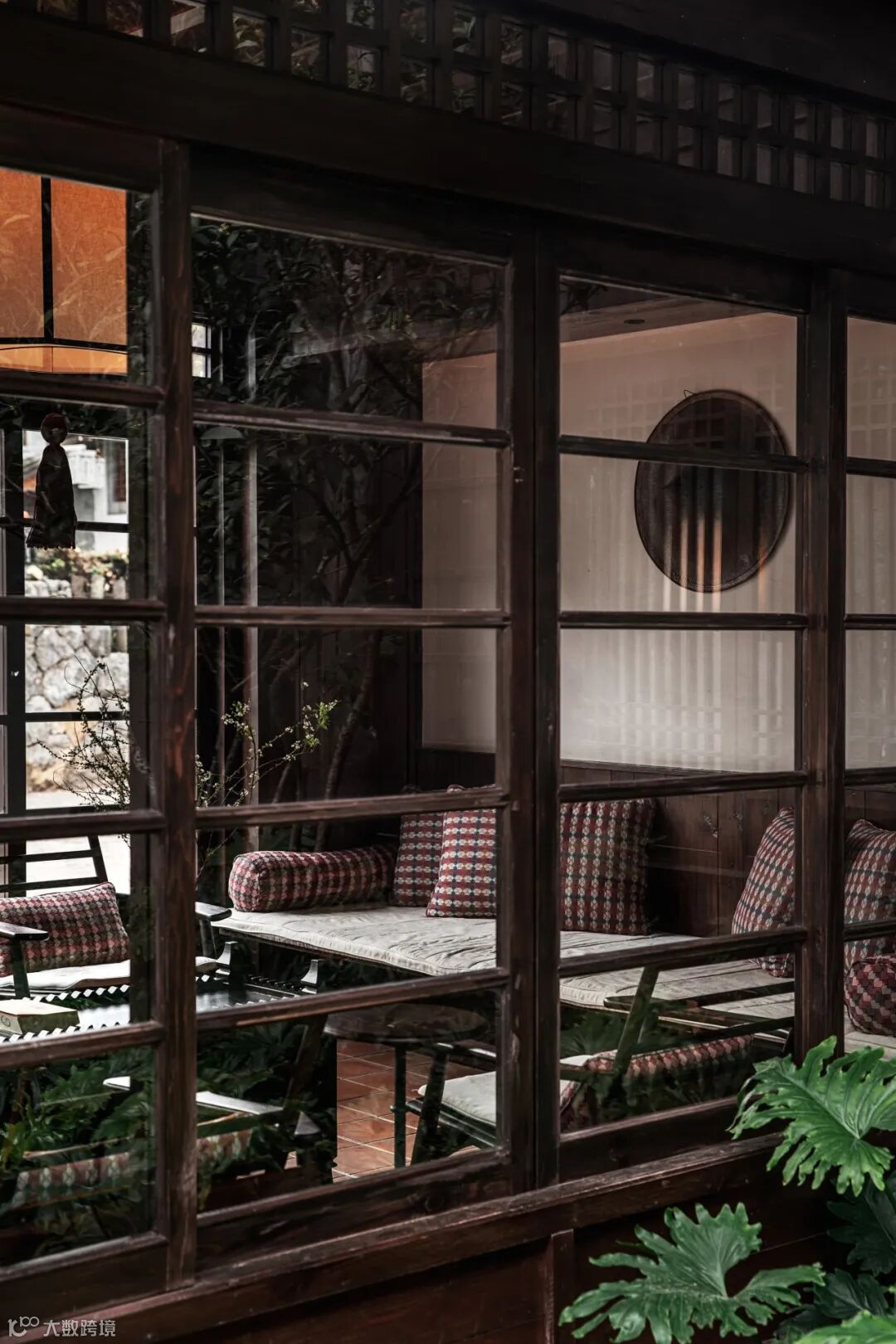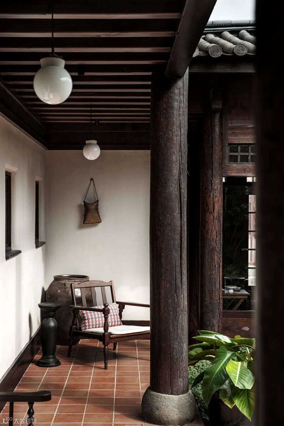 小小天井里的绿植苗木在阳光底下影影绰绰,回廊下的兰花尽显淡然清雅,一个个简而不繁的摆件恰到好处地点缀在角角落落里,实木的原味似乎淡淡弥散在空气里……