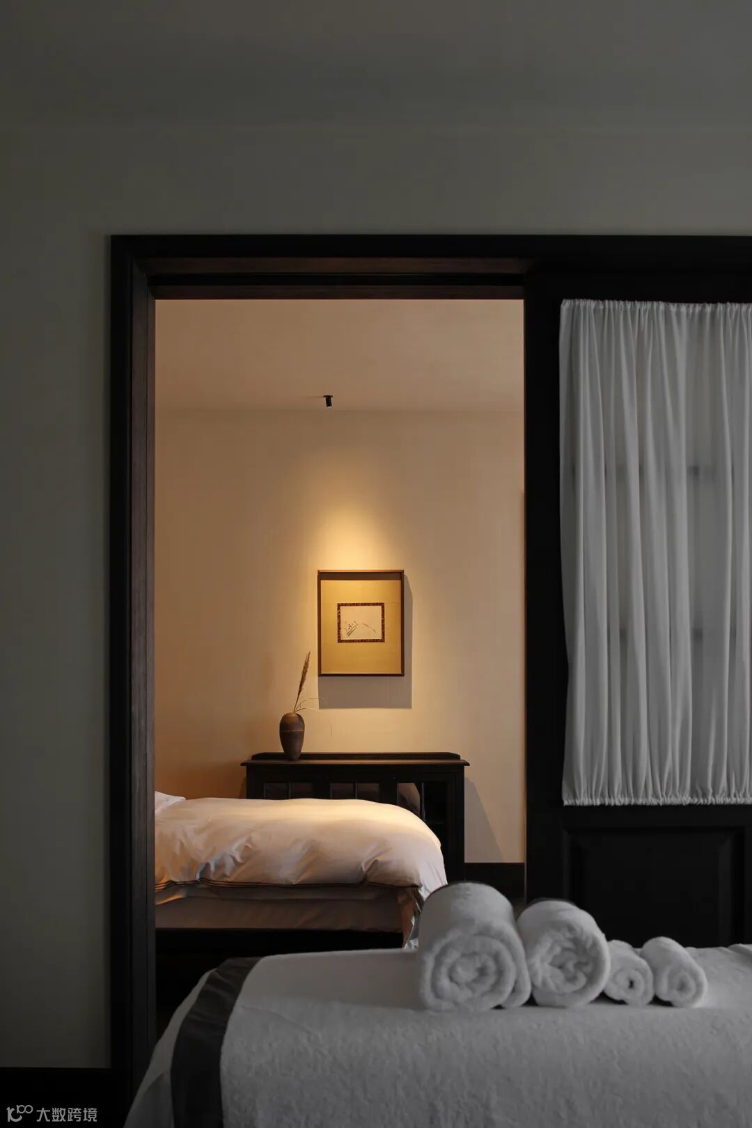 客房内看到的不仅是设计,而是对于生活的深刻体会。内与外、深与浅、质朴与精巧,这一重重对比,映衬出空间的静谧之境。