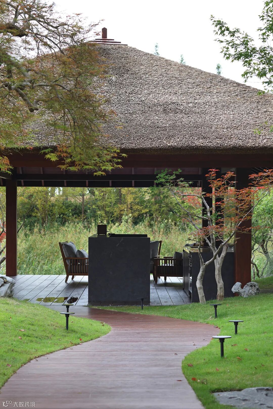 将自然的引入室内,视野的边界不再是建筑的玻璃或墙壁,而是直接伸展到花园尽头。