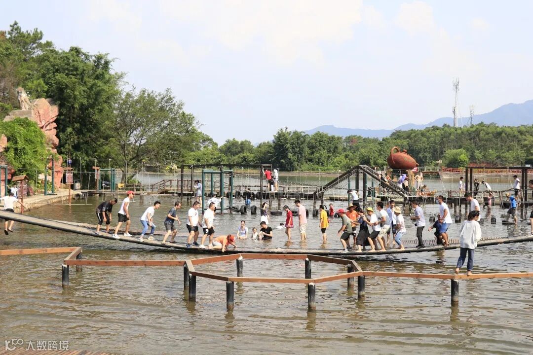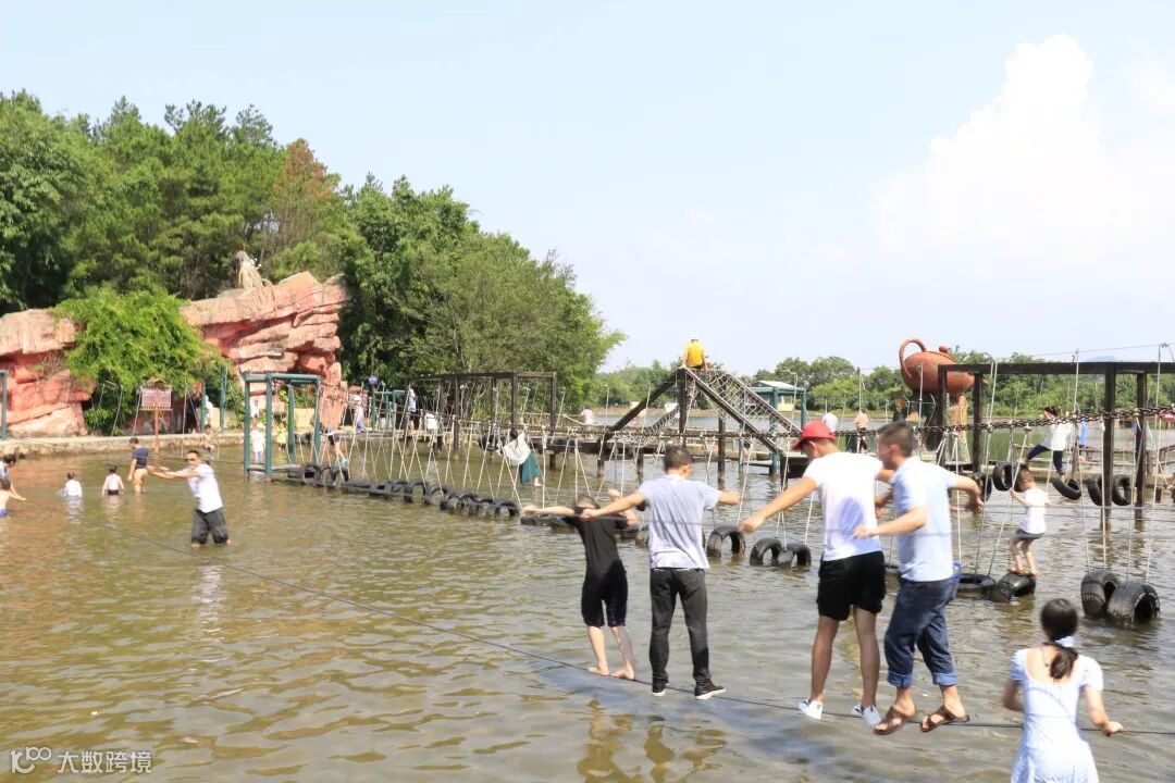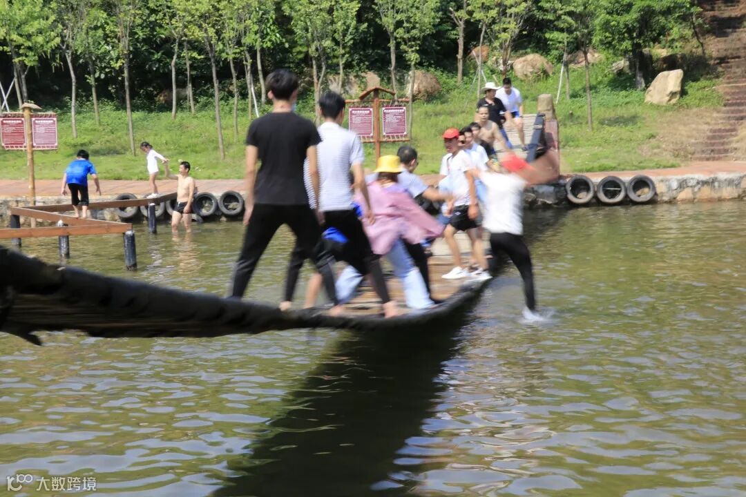 稍稍恢复后又分成几队,挑战不一样的水路。水上飞、铁索桥、水上吊桩等等,一个个摩拳擦掌,勇敢挑战自我......