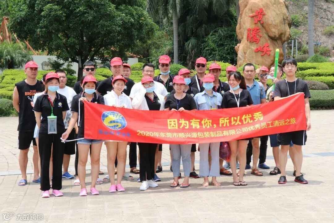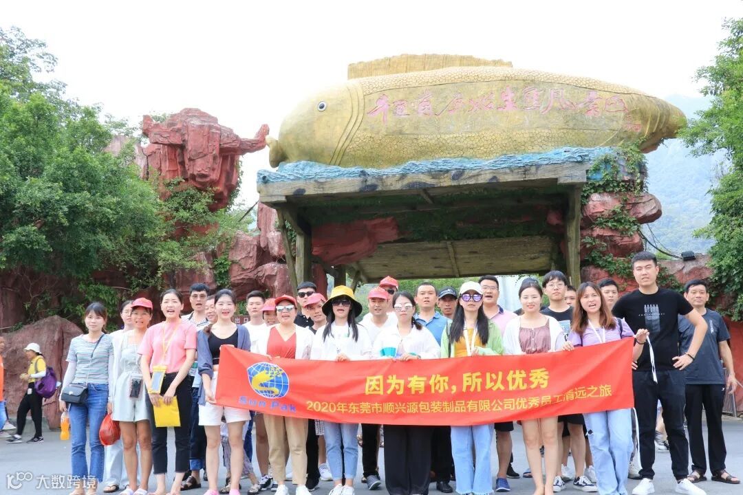 八月,荷香清远,微风拂面,橙黄橘绿,最是一年好景时,为感谢顺兴源优秀员工在上半年的辛勤劳动,以及争取在下半年取得更好的成绩,2020年8月7日至8月8日,东莞市顺兴源包装制品有限公司组织优秀员工前往被称为“珠江三角洲后花园、中国漂流之乡、温泉之乡”的清远,进行了为期2天1夜的激情拓展之旅,让优秀员工和家属去享受大自然缤纷绚丽的景色。