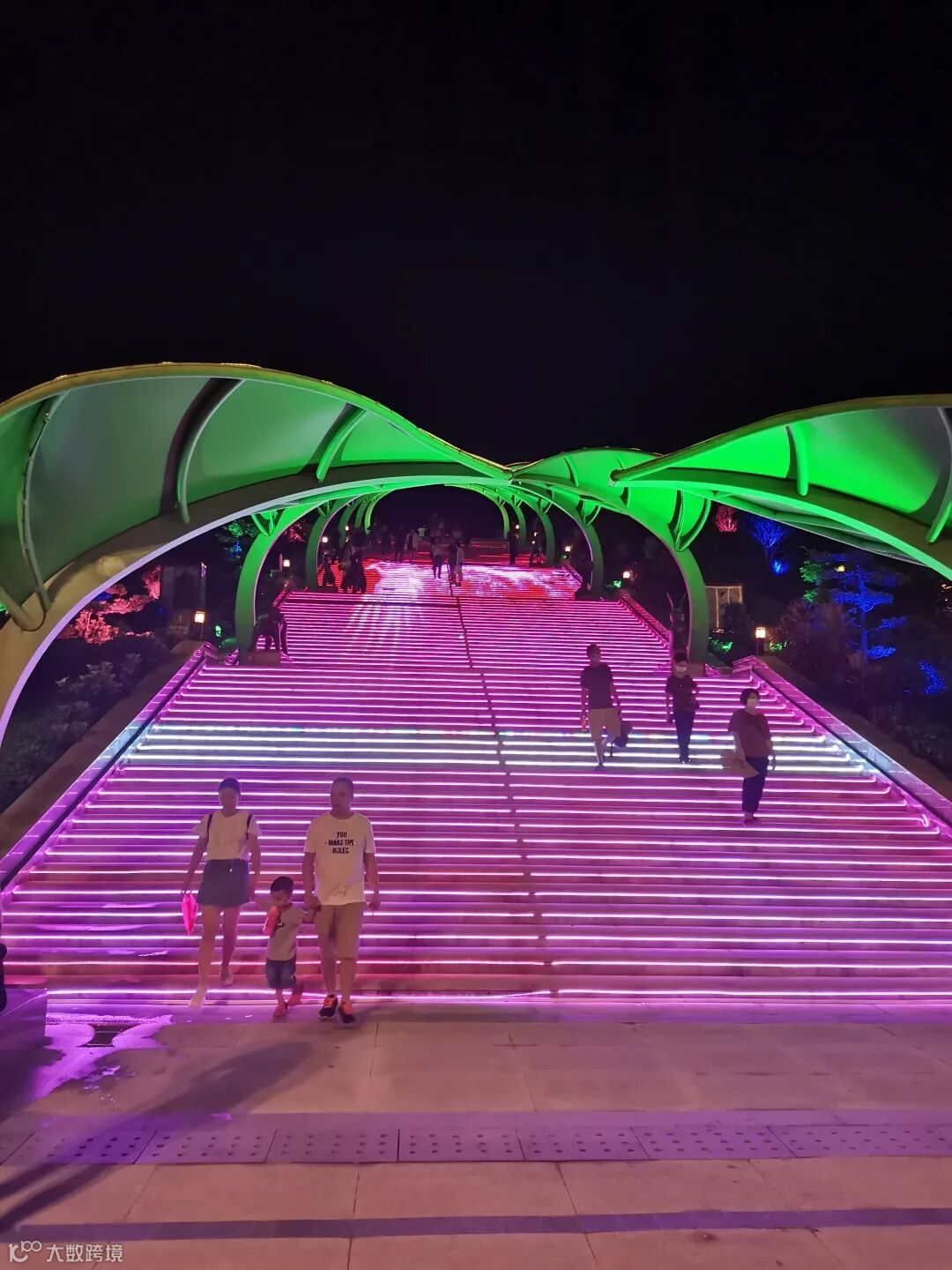 夜间这里是一个美妙的灯光世界、音乐世界。站在天门悬廊上可以俯瞰整个清远夜景,可以感受震撼的灯光动画;站在花溪谷中可以最佳视角的观看天门悬廊多只绚丽大型灯具组合而成的灯光大秀,体验梦幻灯光大道,亦能欣赏到大型半山音乐喷泉等特色景观。
