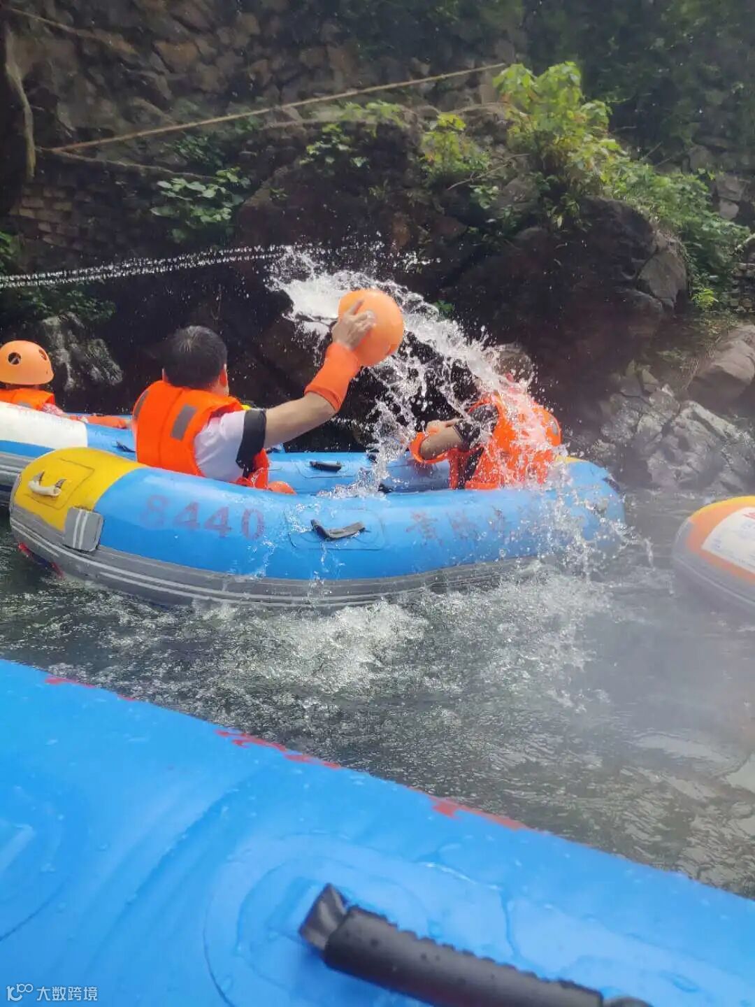 当踏上橡皮艇,所有人便迫不及待玩起了水,重温了儿时的童趣,河岸上留下了大家的串串笑声。橡皮船顺流而下,时而落差,时而水坡,时而急流,时而漩涡,皮艇俯冲而下,激起数米高的层层浪花,不禁让人心跳加速,冰凉舒爽的那份快感又让人大呼过瘾,更激起了大家激流勇进的猛士欲望。刺激的漂流也似乎唤起了大家寻乐的童心,河道中彼此你追我赶,一旦相遇少不了要一场戏水激战。欢呼声、被水击中的尖叫声、开怀的笑声,回荡在山谷,混响成一首只有快乐才能演绎的high歌。