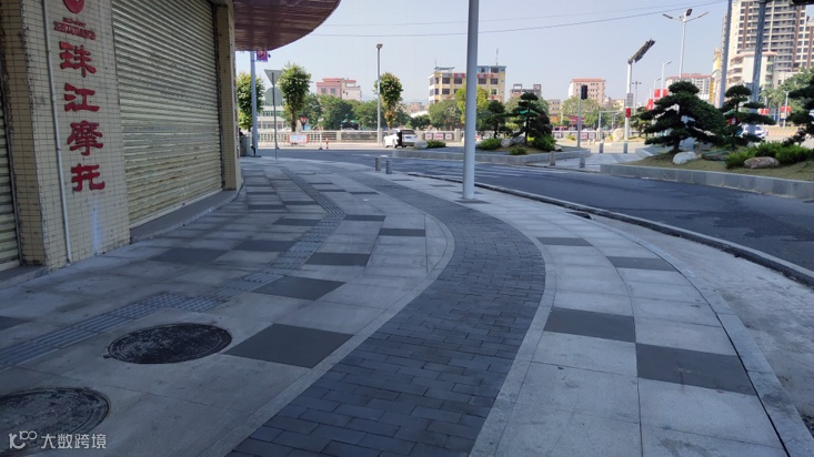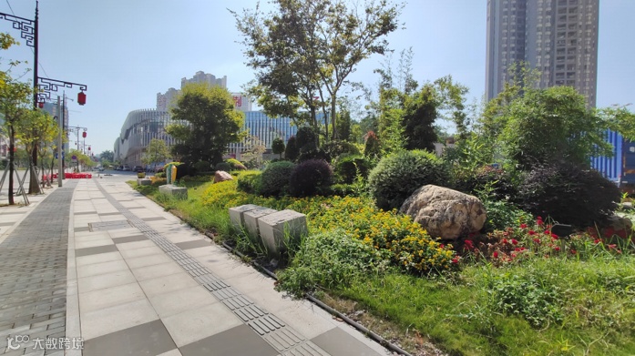 人行道铺装的内容有花岗岩地面及导盲砖、花岗岩路缘石、树池等。石材尺寸规格标准,完成面平整度高,表面洁净,板缝均匀,填缝饱满。路缘石采用封开花花岗岩铺设,完成面砌筑稳固、砂浆饱满、勾缝密实,外露面清洁、线条顺畅。