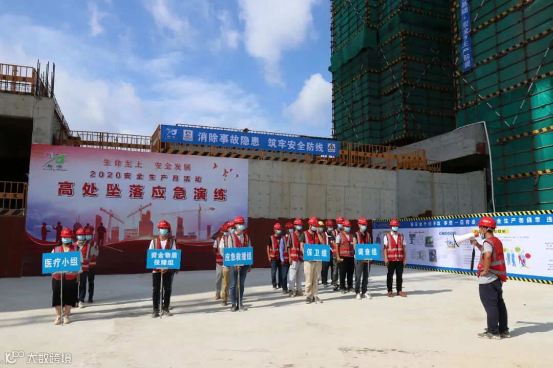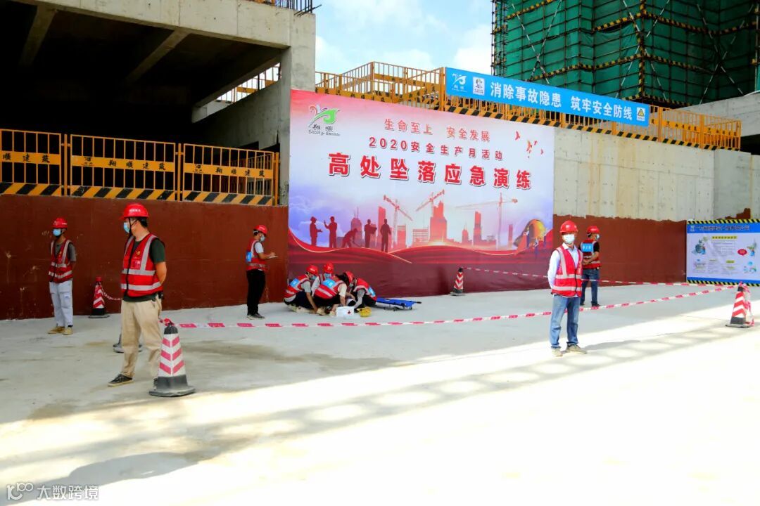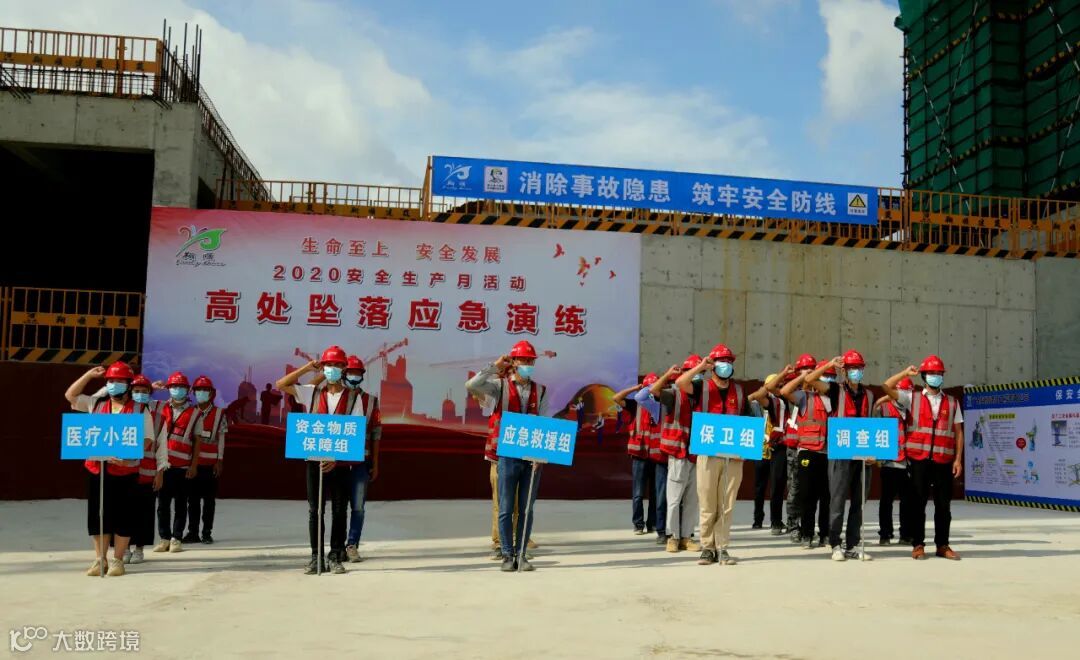 2020年6月是全国第19个“安全生产月”,为进一步加强职工的安全知识储备及面对突发事件紧急处理的应变能力,确保每位职工掌握安全事故应急处理的方法,6月24日上午,云浮筠粤豪苑项目举行2020年《安全生产月》“防高坠”应急演练活动。市住建局副局长陈树章、市住建局质安科科长吴木辉、市安监站站长李结友、翔顺建筑副总经理裘煜、筠粤豪苑项目经理李海斌等参加了本次观摩活动。