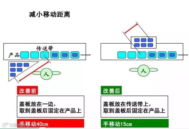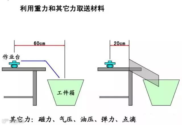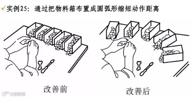 以上四项原则的正确贯彻,可以减少人员、物料的移动距离,减少人体动作(如转身、跨步、弯腰、起身等),从而能提高动作效率和减轻疲劳程度。