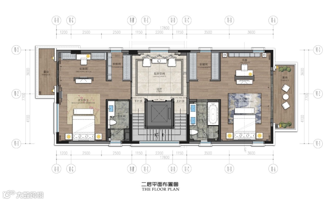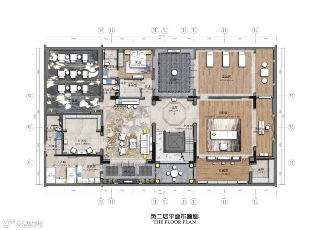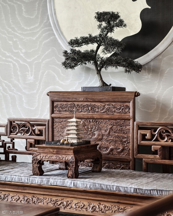 丰富的空间层次递进,横向通透、纵向通达,体现出“中正平和”的东方哲学思想,呈现中式雅生活的格调。