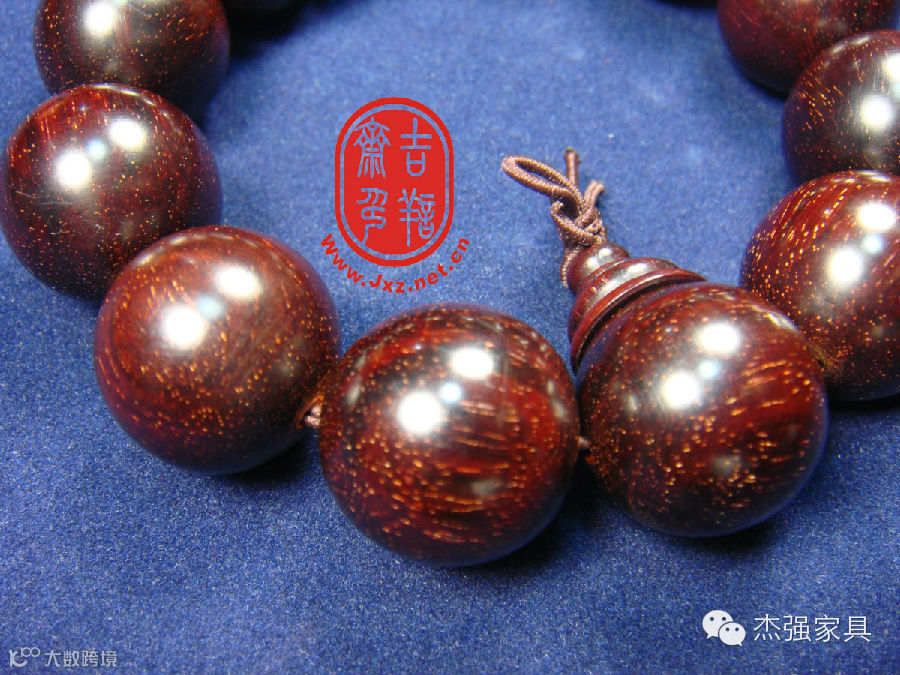 紫檀有许多种类,紫檀生长速度缓慢,5年才一年轮,要800年以上才能成材,硬度为木材之首,系称“帝王之木”,非一般木材所能比。“金星”实际上就是指紫檀料加工横切面上,脉管内的有机物沉淀,由于生长环境因素和时间因素,有机物和矿物质不断沉淀形成的有金属质感的亮点。尤其是佛珠手链,每个柱子经切割和打磨后,呈现球面,球面上即可呈现黄色点状金星,与紫檀料底色,色彩对比明显,甚是好看。
