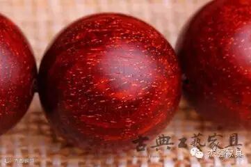 从手串到镇纸到文玩,紫檀小件的方便携带让它成为最受宠的“紫檀制品”。对紫檀有研究的人喜欢“紫檀满金星”。大部分人认为,“紫檀满金星”才是最高贵最有价值的紫檀。