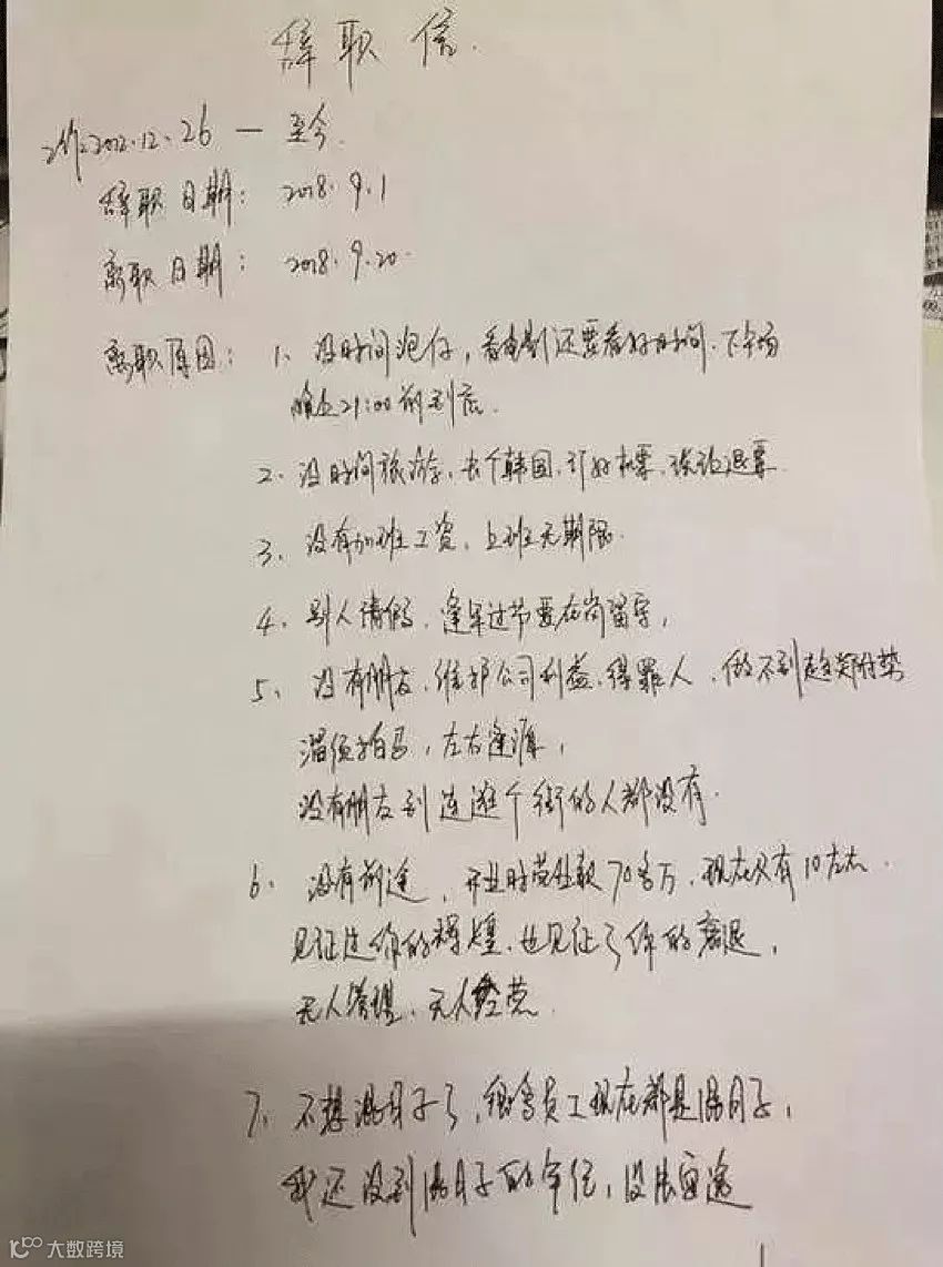 她列举了7条离职的原因: