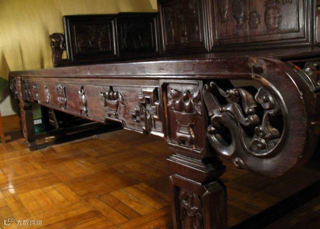 5、台类红木家具的面板,为了保护漆膜不被划伤,又要显示木材纹理,一般在台面上放置厚玻璃板,且在玻璃板与木质台面之间用小吸盘垫隔开。建议不要用透明聚乙烯水晶板。