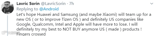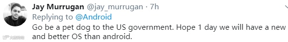 ▲"去做美国政府的宠物狗吧。希望有一天我们会有一个新的,比Android更好的操作系统。”