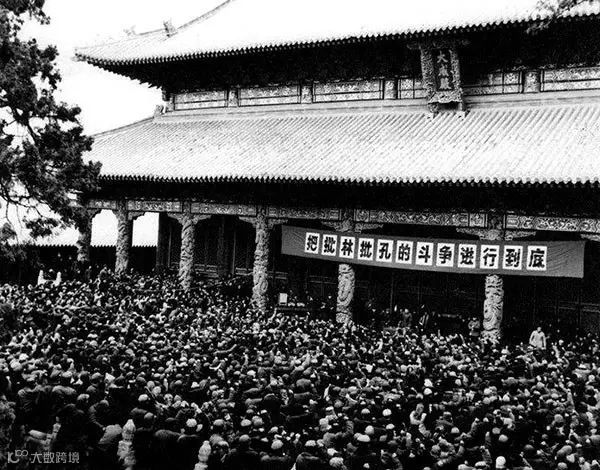 1974年,山东曲阜孔庙大成殿前召开的"批林批孔"大会。