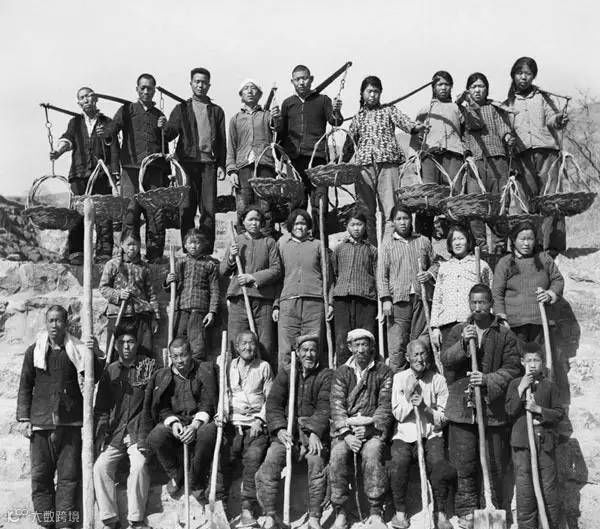 1974年,河南辉县,荒滩造田的民工们的合影。王树洲/摄。