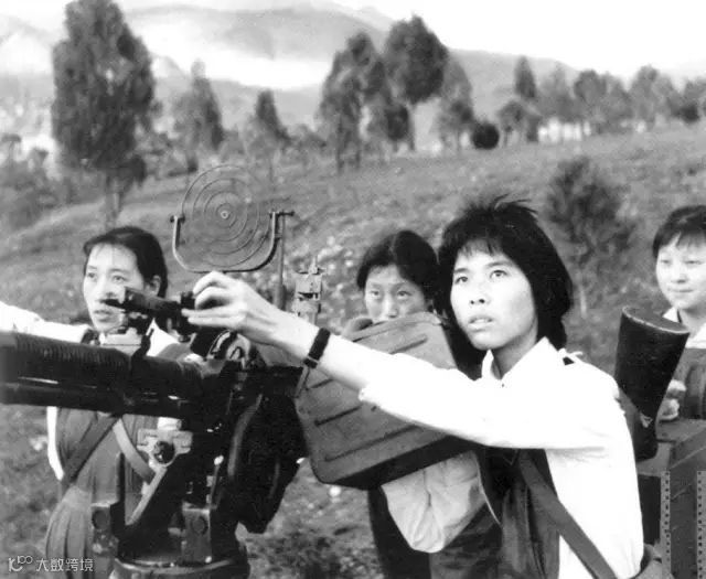 1970年代,云南省丽江,狮子山上正在参加训练的纳西女民兵。