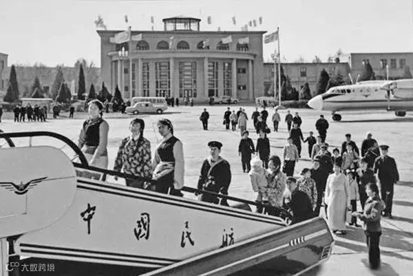 1976年3月,郑州东郊机场,正在登机的乘客。宋克礼/摄。