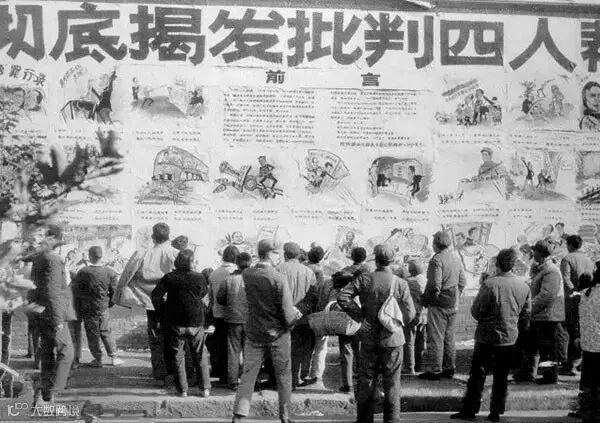 1976年,湖北襄樊市街头随处可见揭批四人帮的大字报。