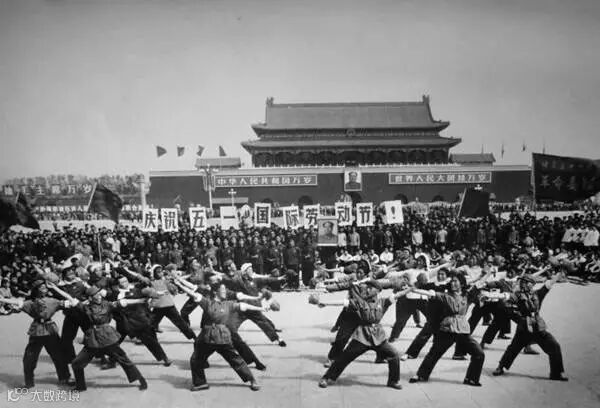 1971年5月1日,天安门广场,红卫兵跳忠字舞。