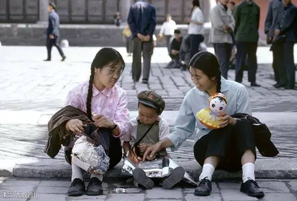 1973年9月,北京故宫,坐在路边带孩子的游客。布鲁诺·巴贝/摄。