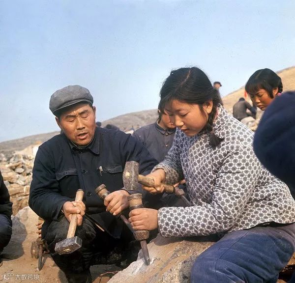1972年,河南辉县书记郑永和教女青年打石头。翁乃强/摄。