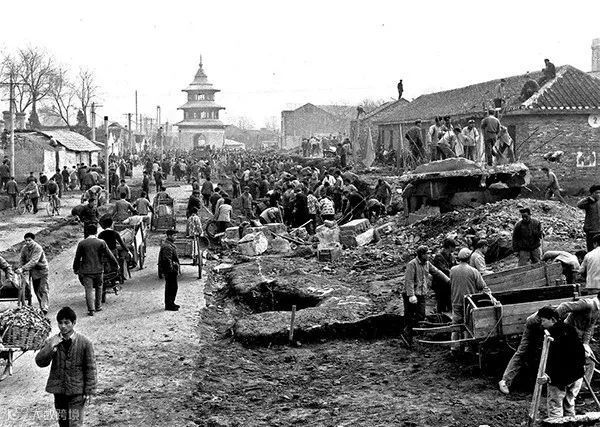1978年,扬州文昌阁周边,"782"工程施工现场,当时有9万余人参与施工。茅永宽/摄。
